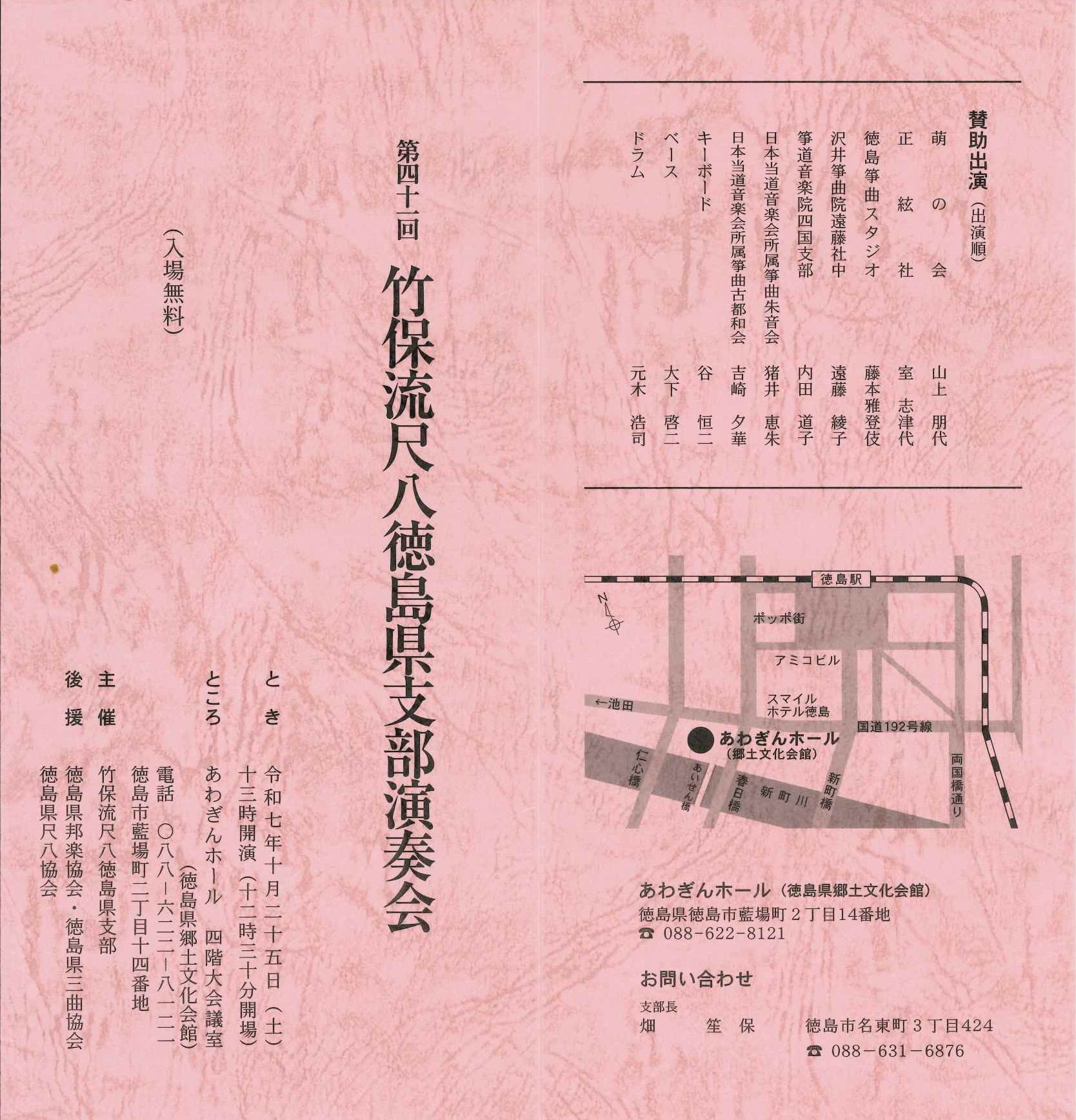 今回は竹保流尺八宗家補佐の酒井竹道が賛助出演します。 |